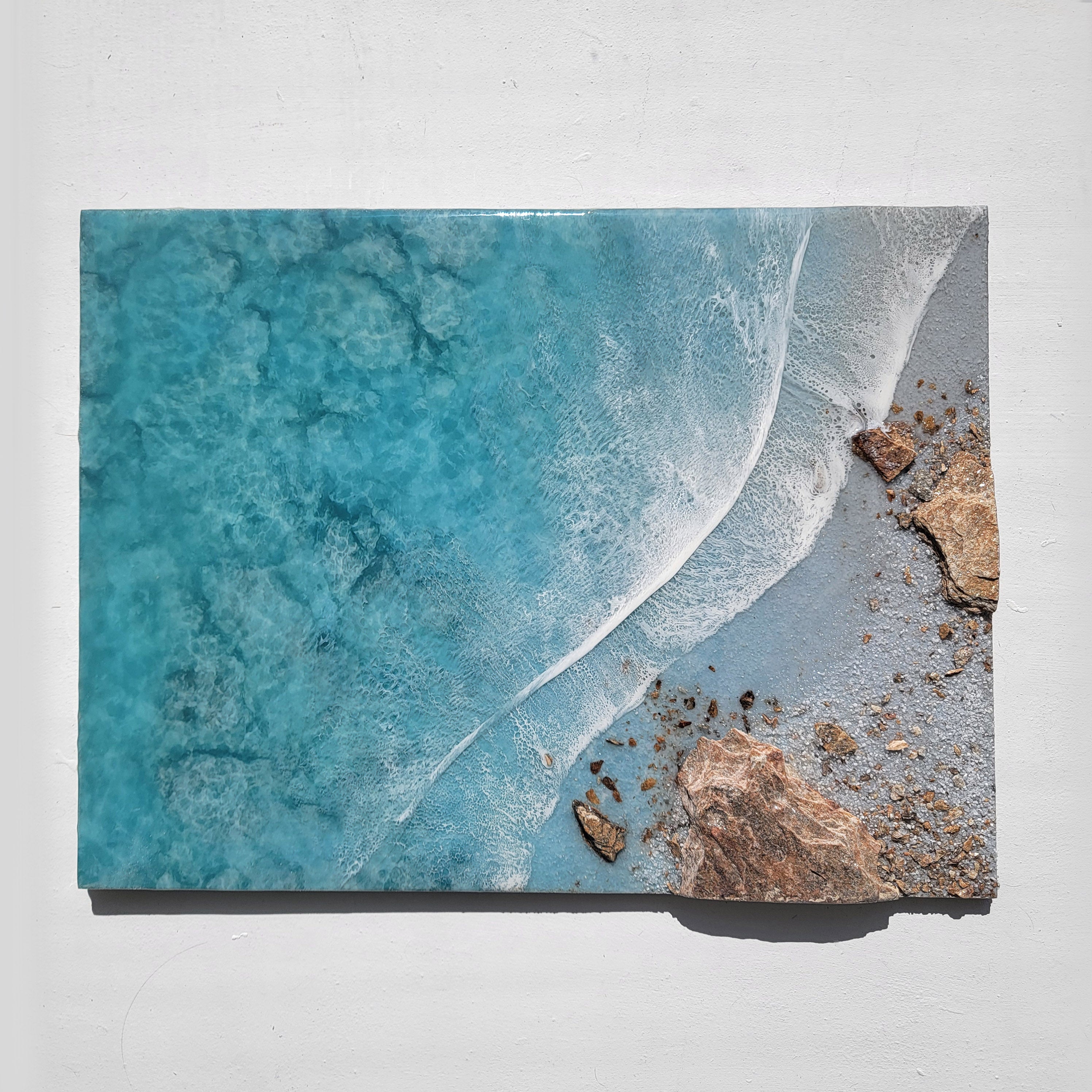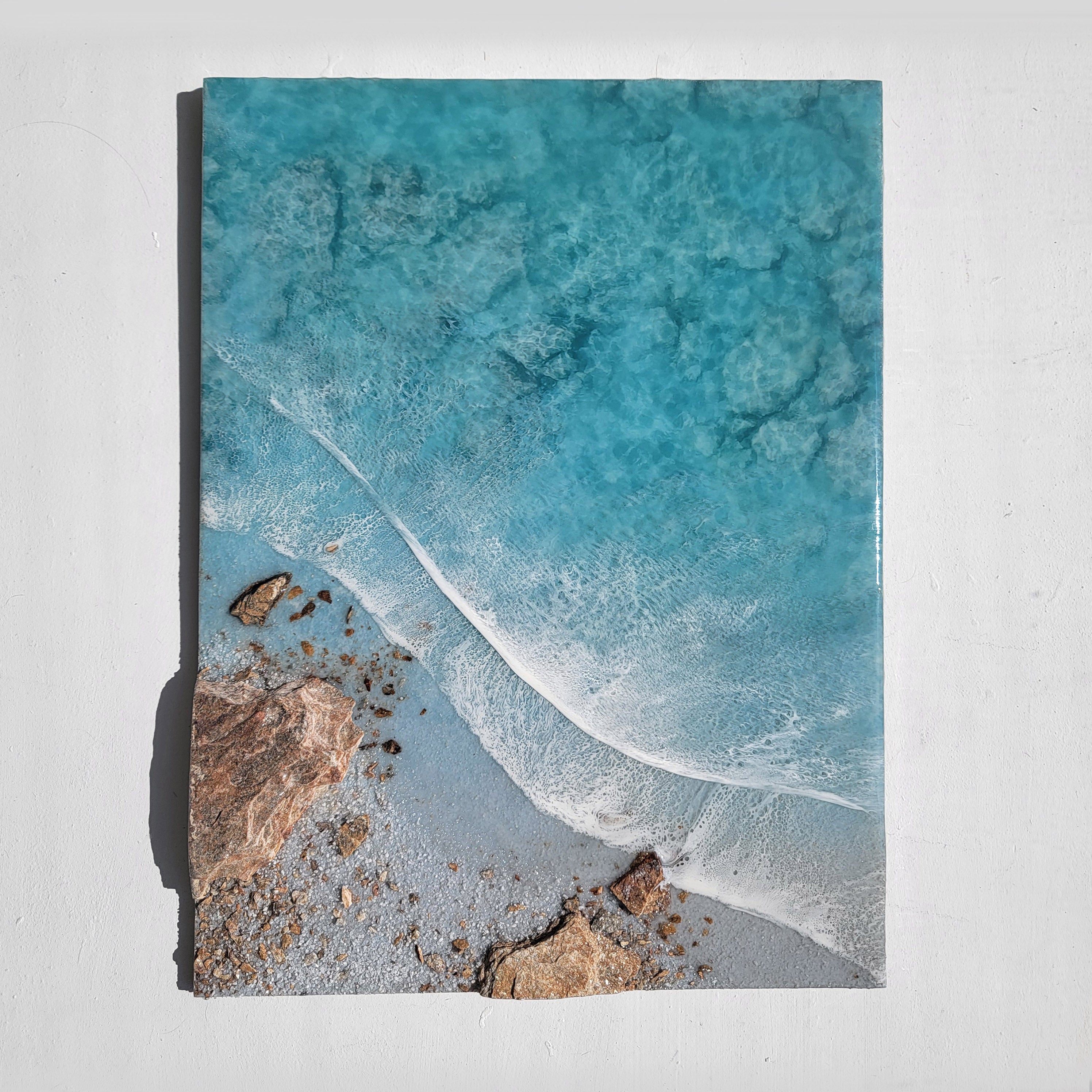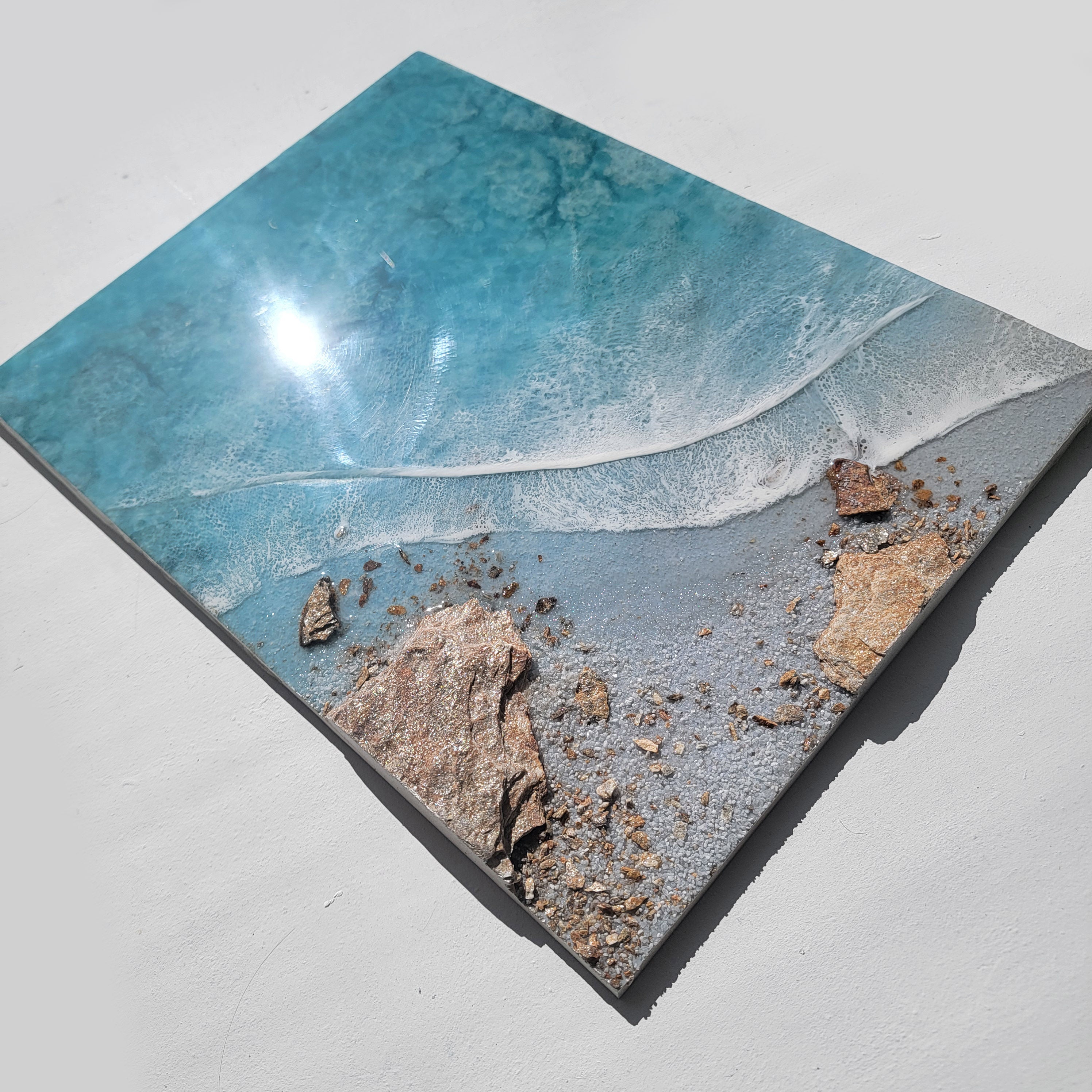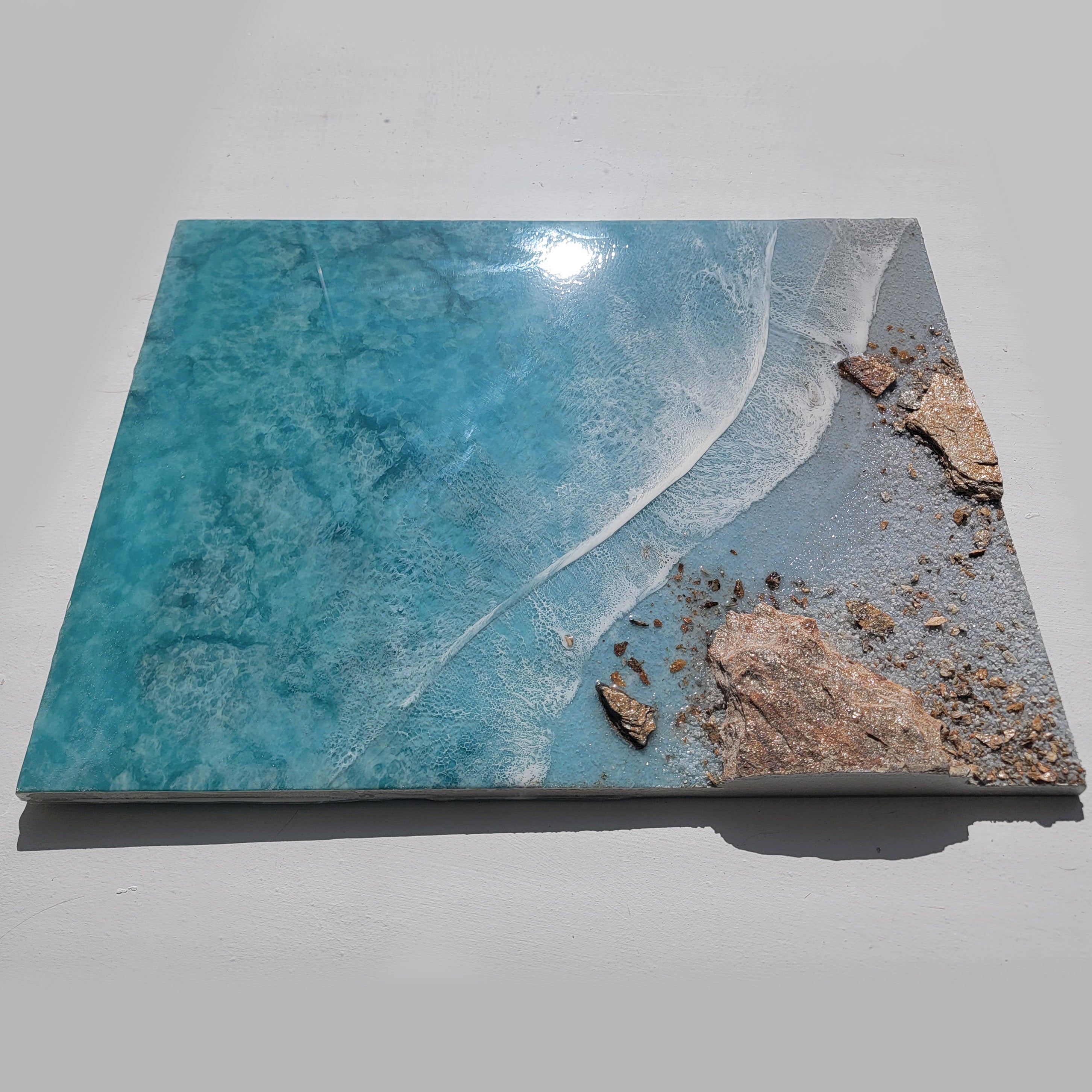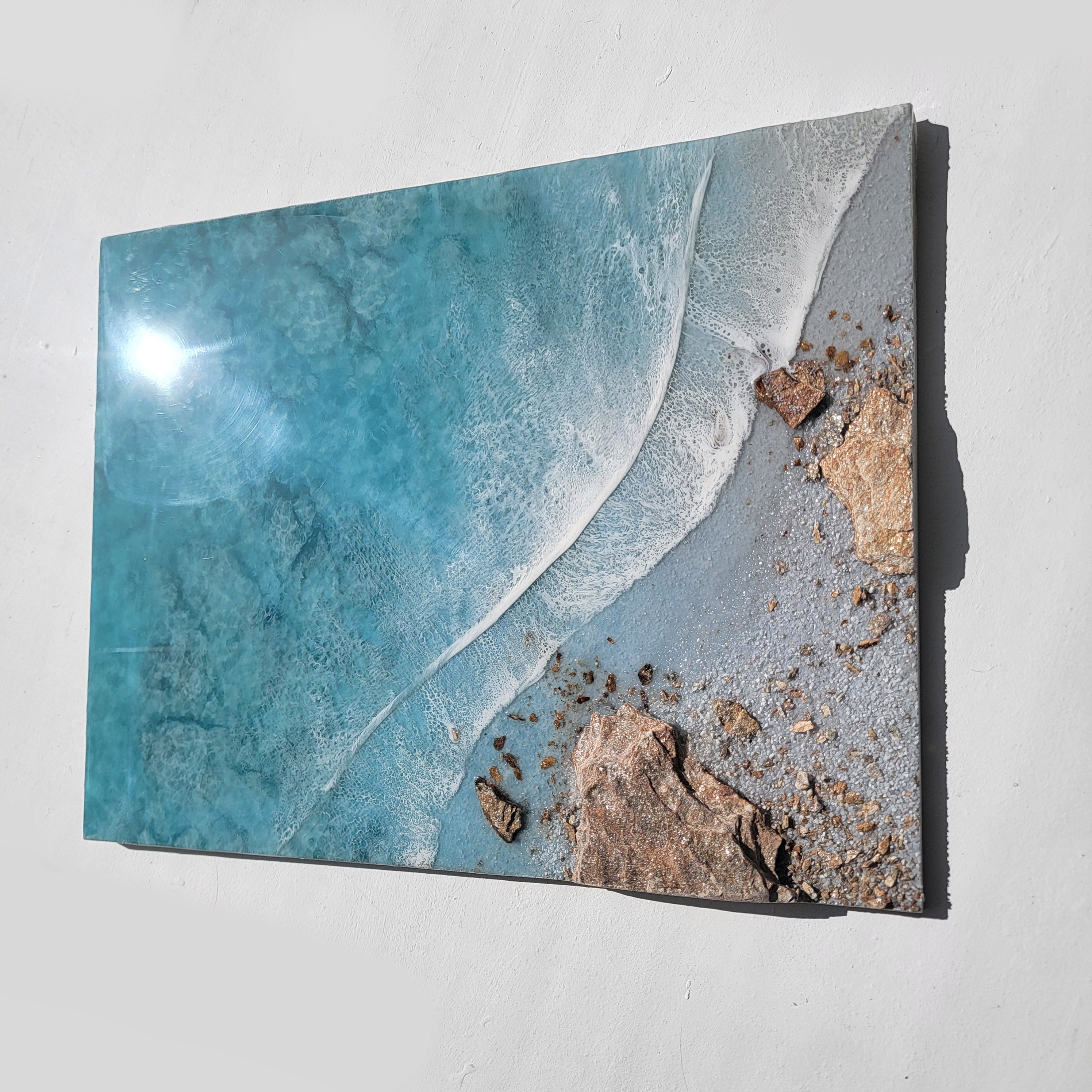 This one-of-a-kind work of art will transport you to a peaceful ocean paradise with its calm colors and calming textures.