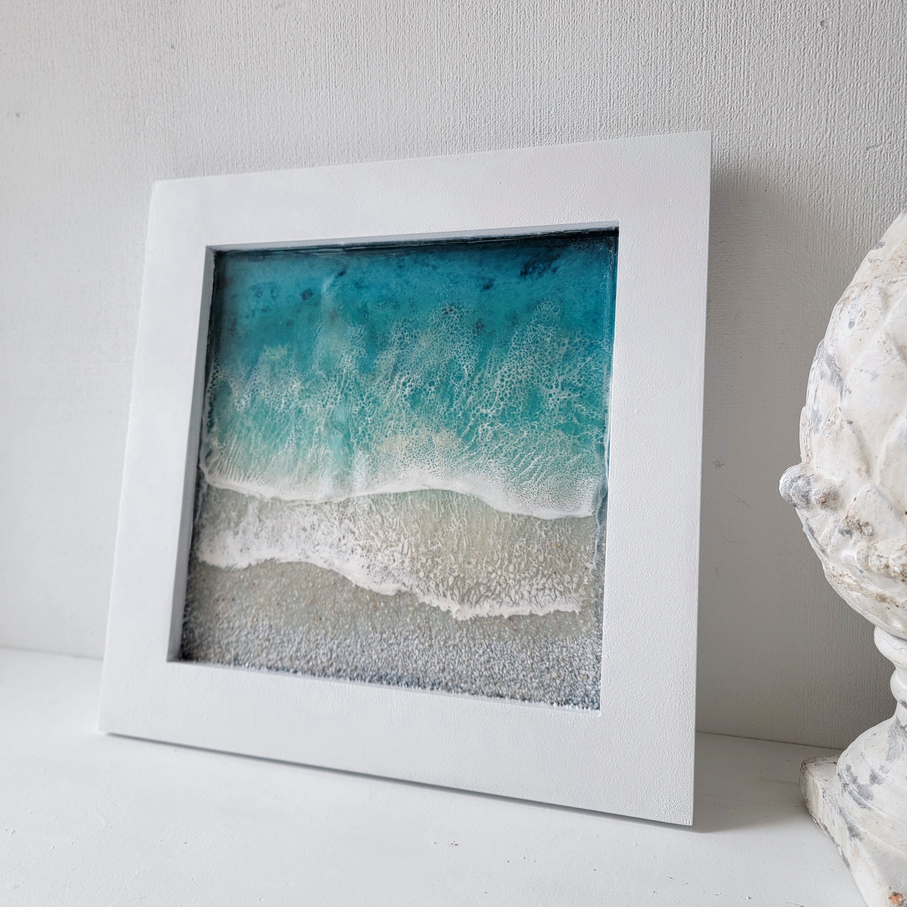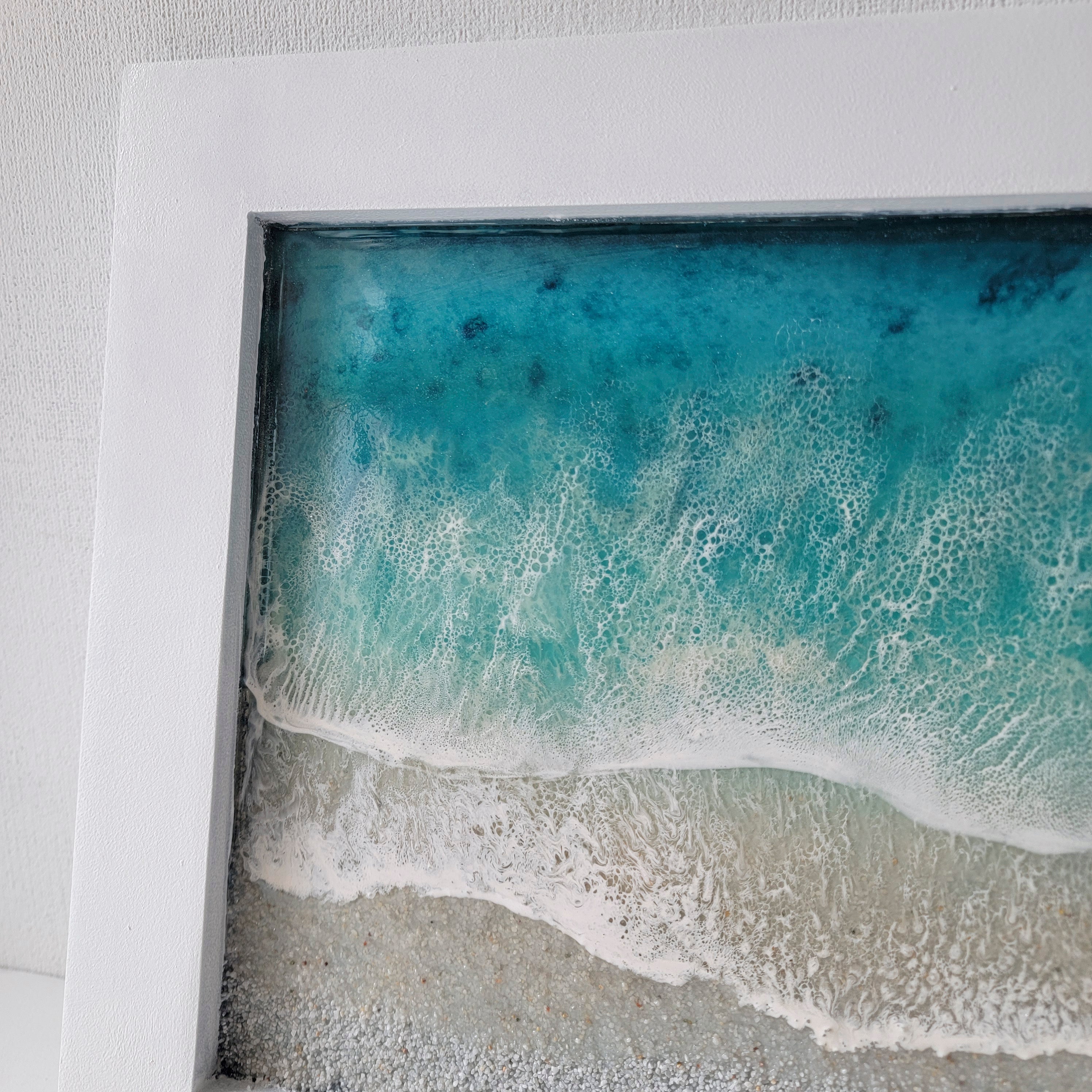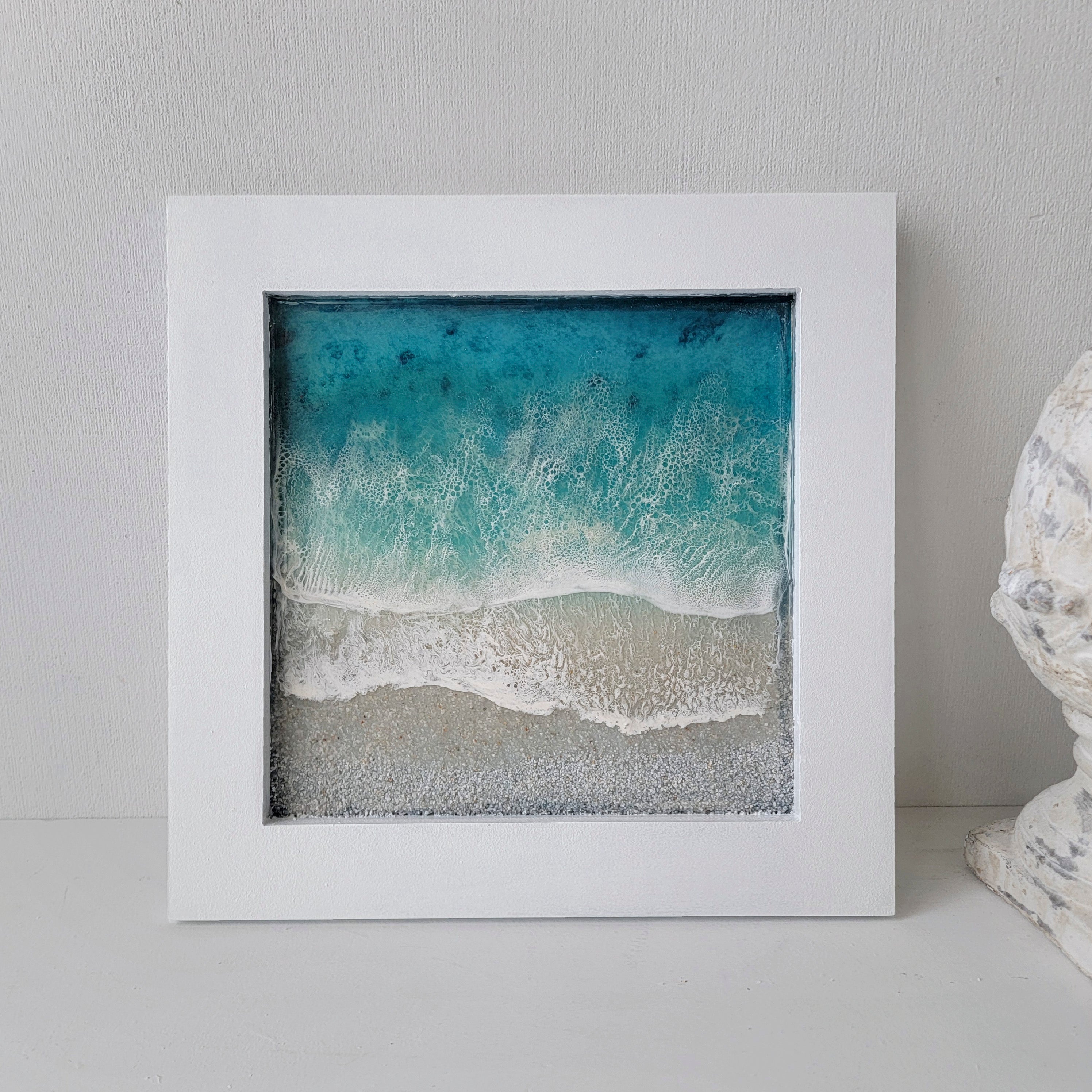 This one-of-a-kind work of art will transport you to a peaceful ocean paradise with its calm colors and calming textures.
