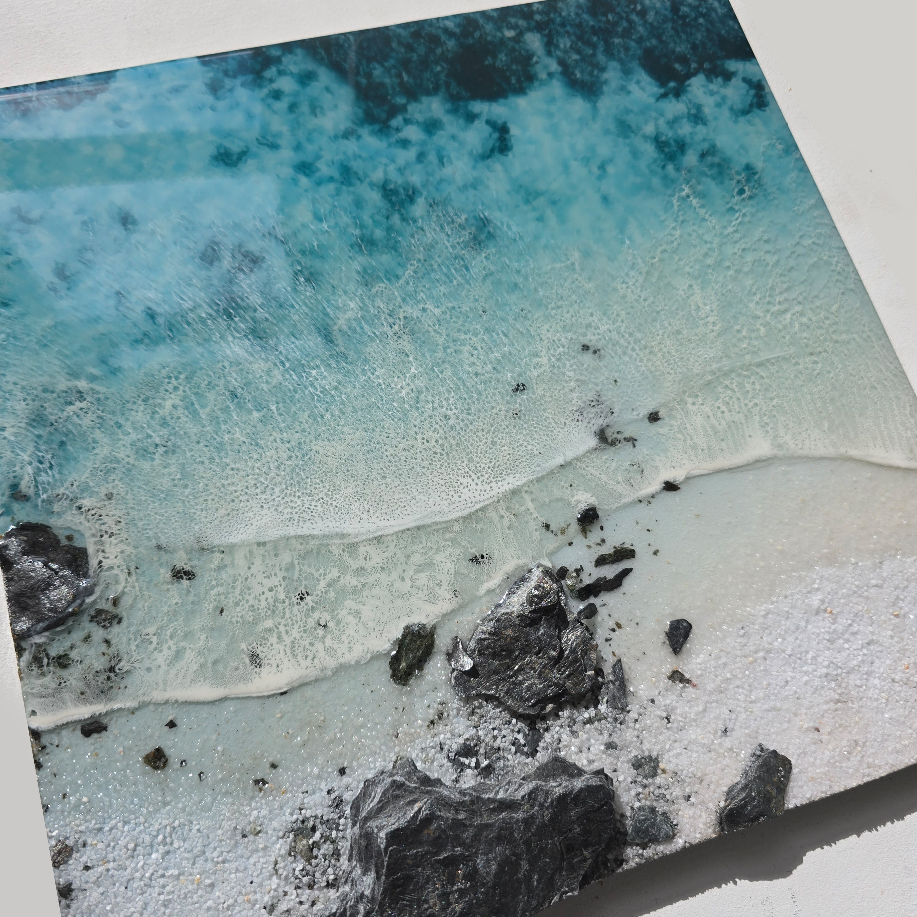 This one-of-a-kind work of art will transport you to a peaceful ocean paradise with its calm colors and calming textures.