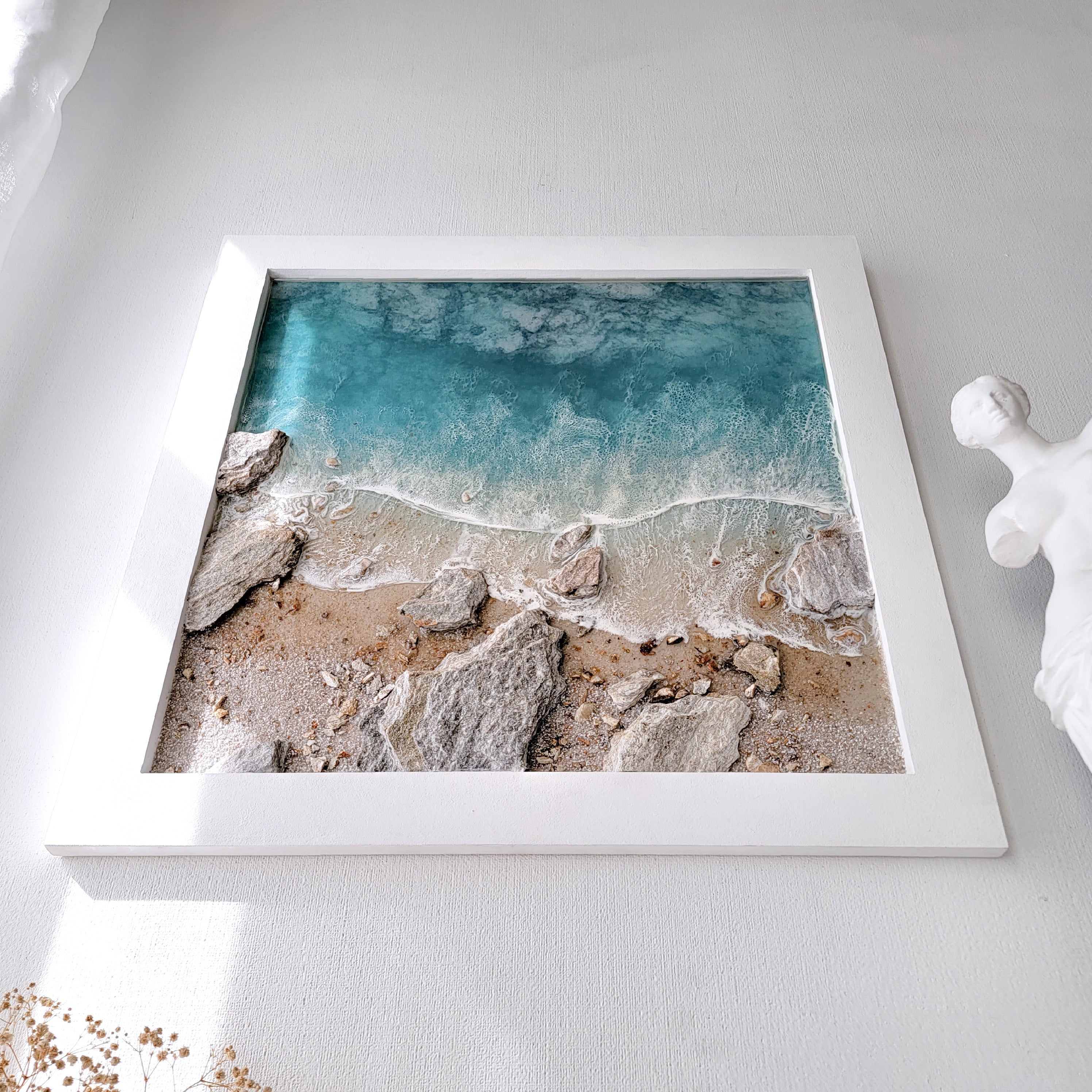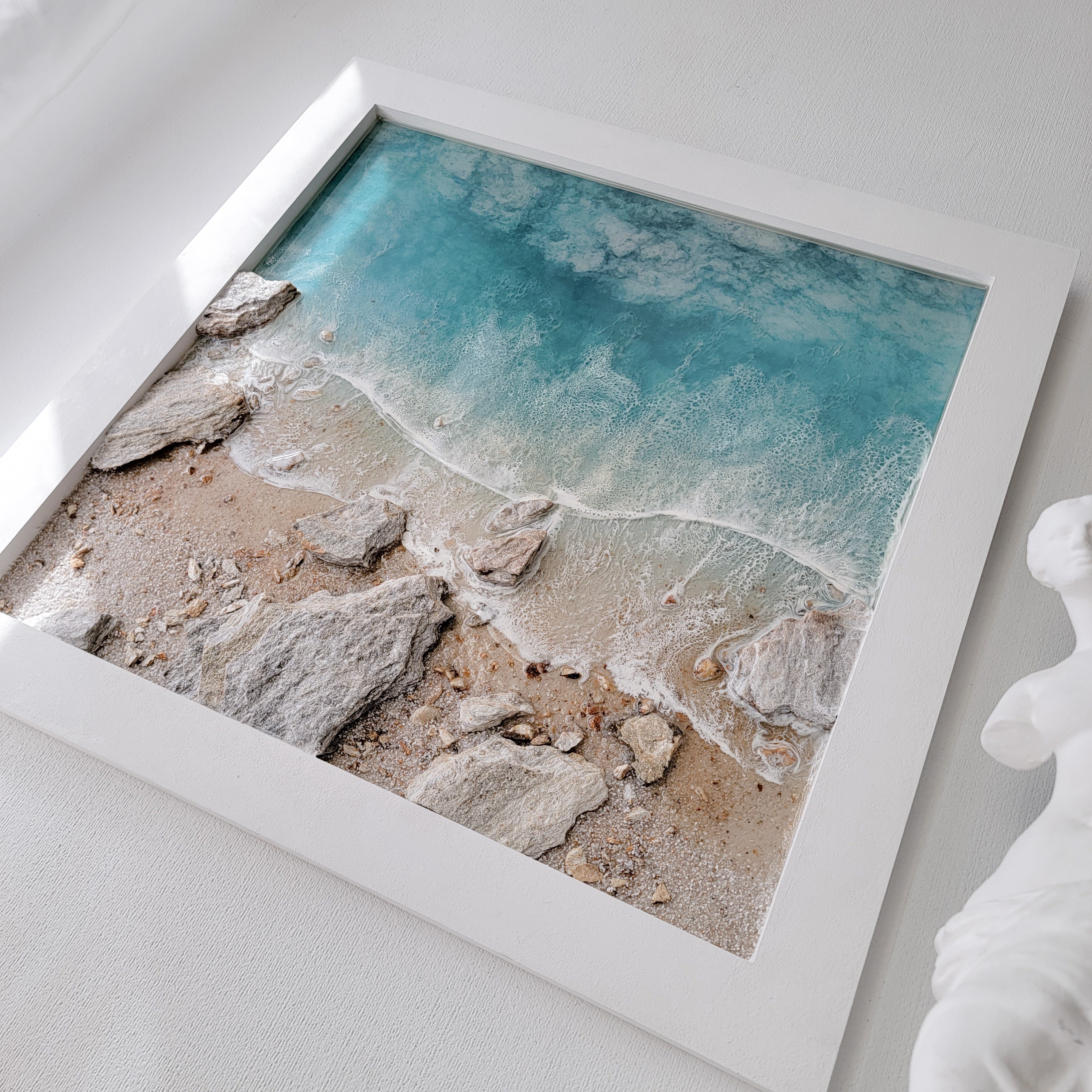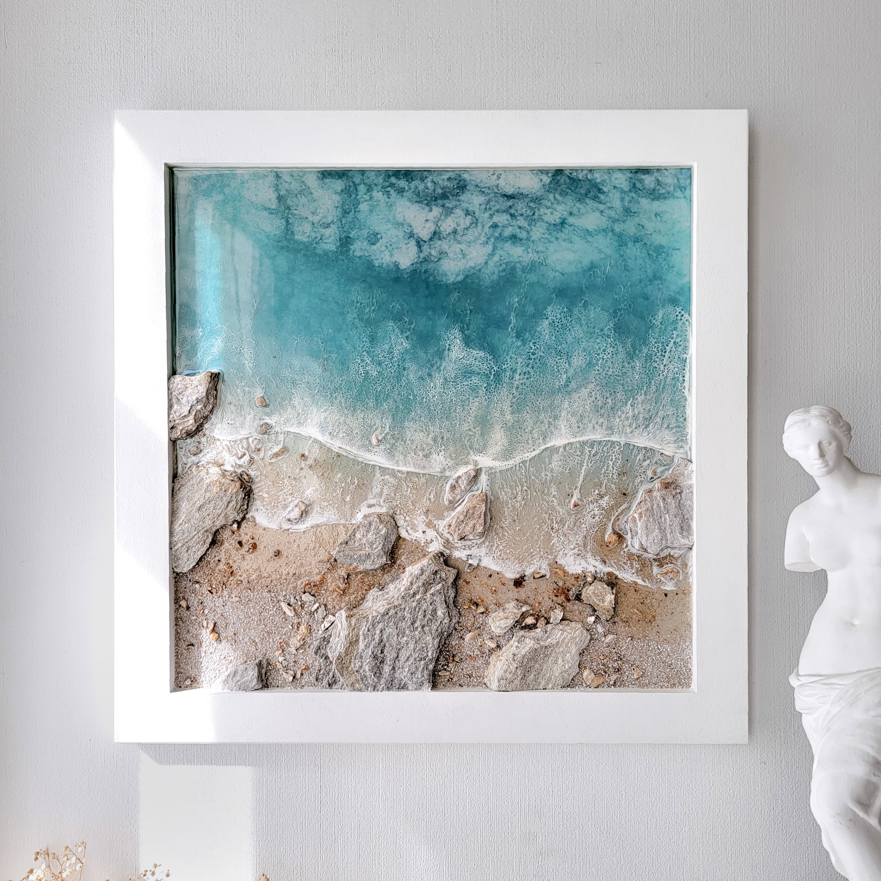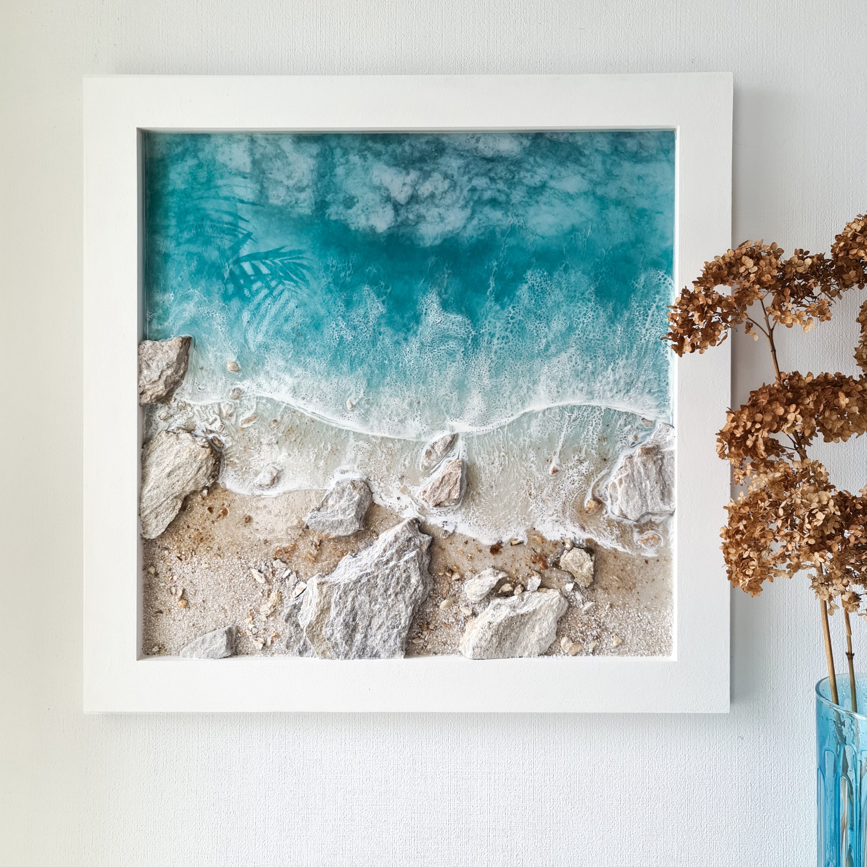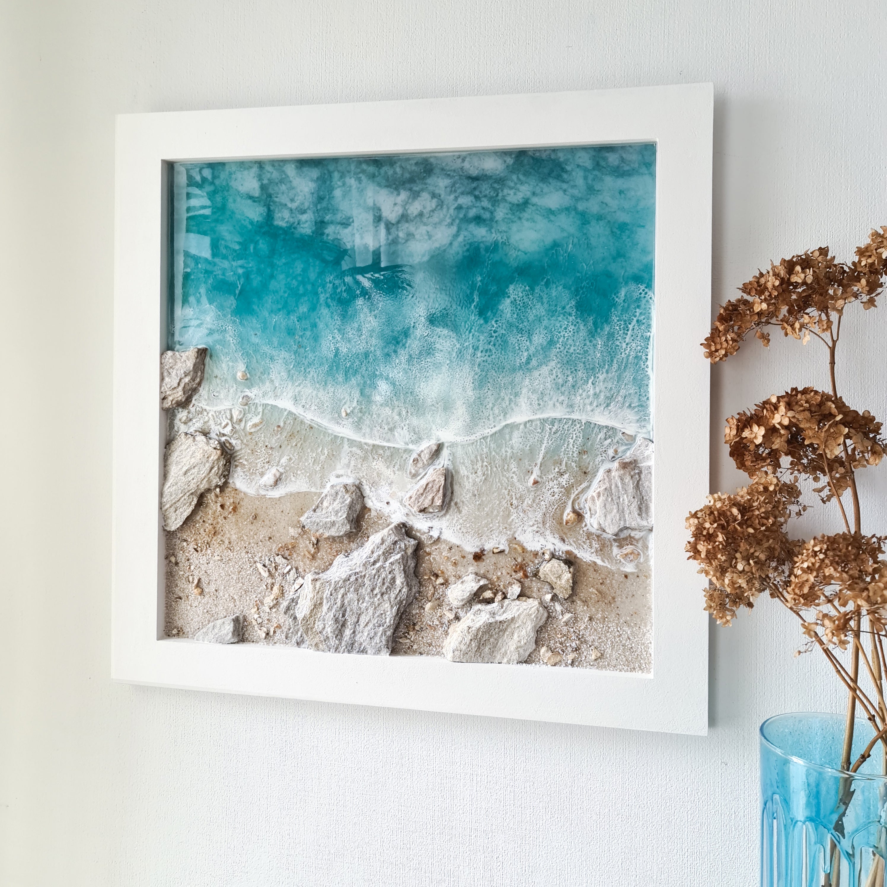 This one-of-a-kind work of art will transport you to a peaceful ocean paradise with its calm colors and calming textures.