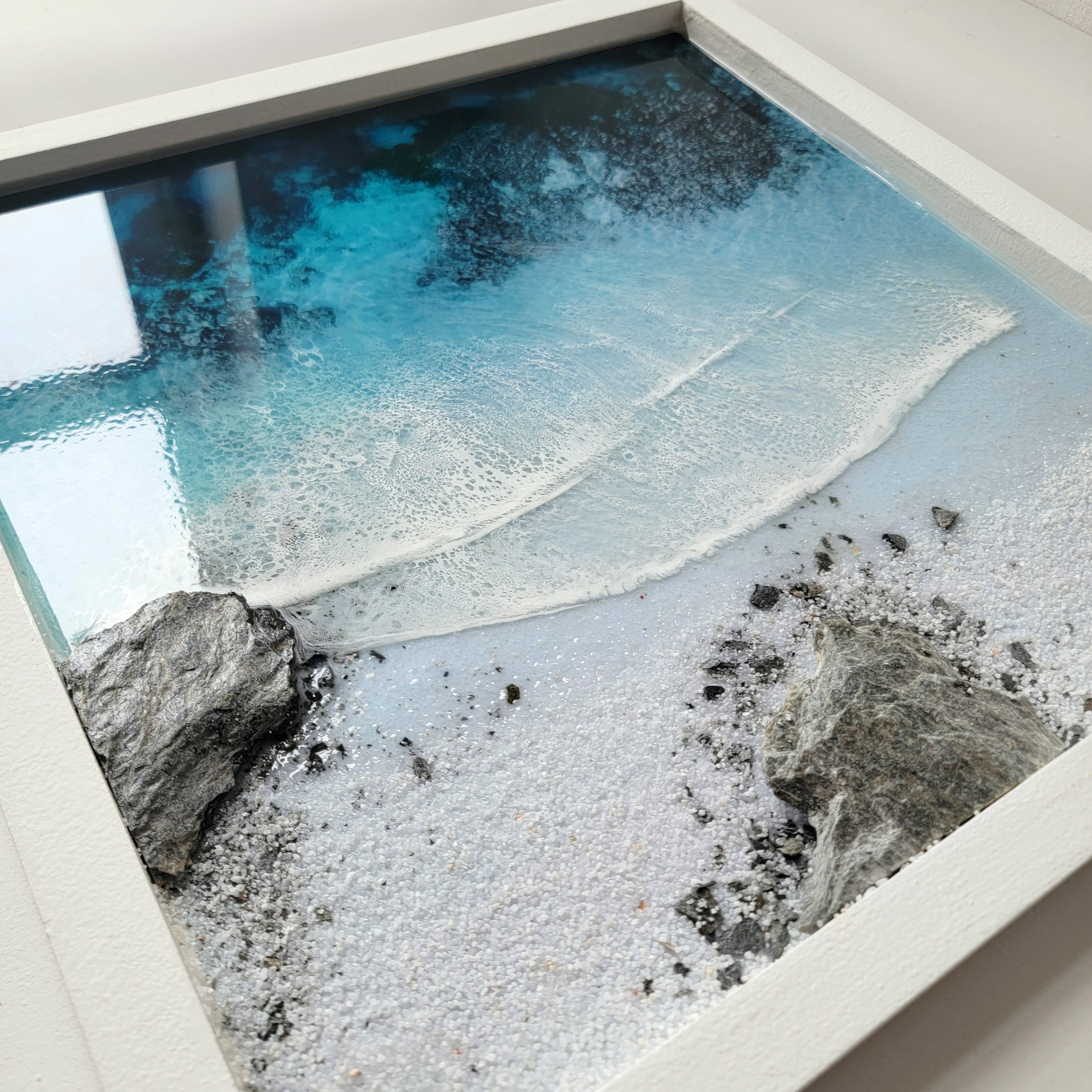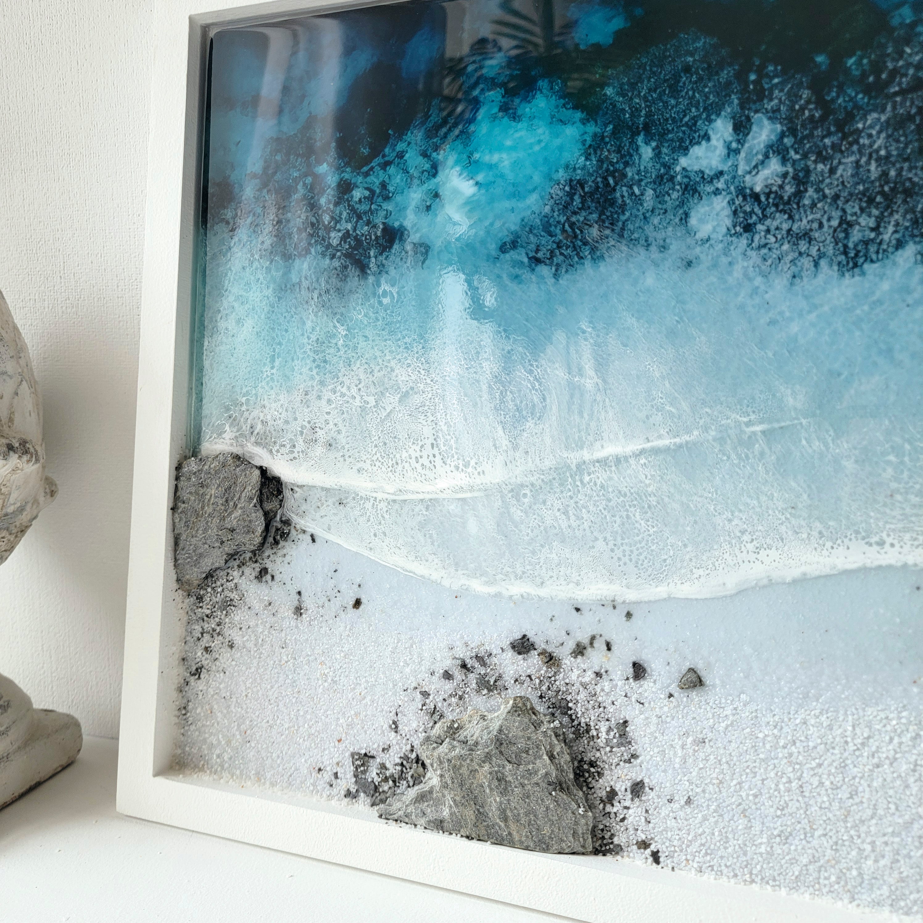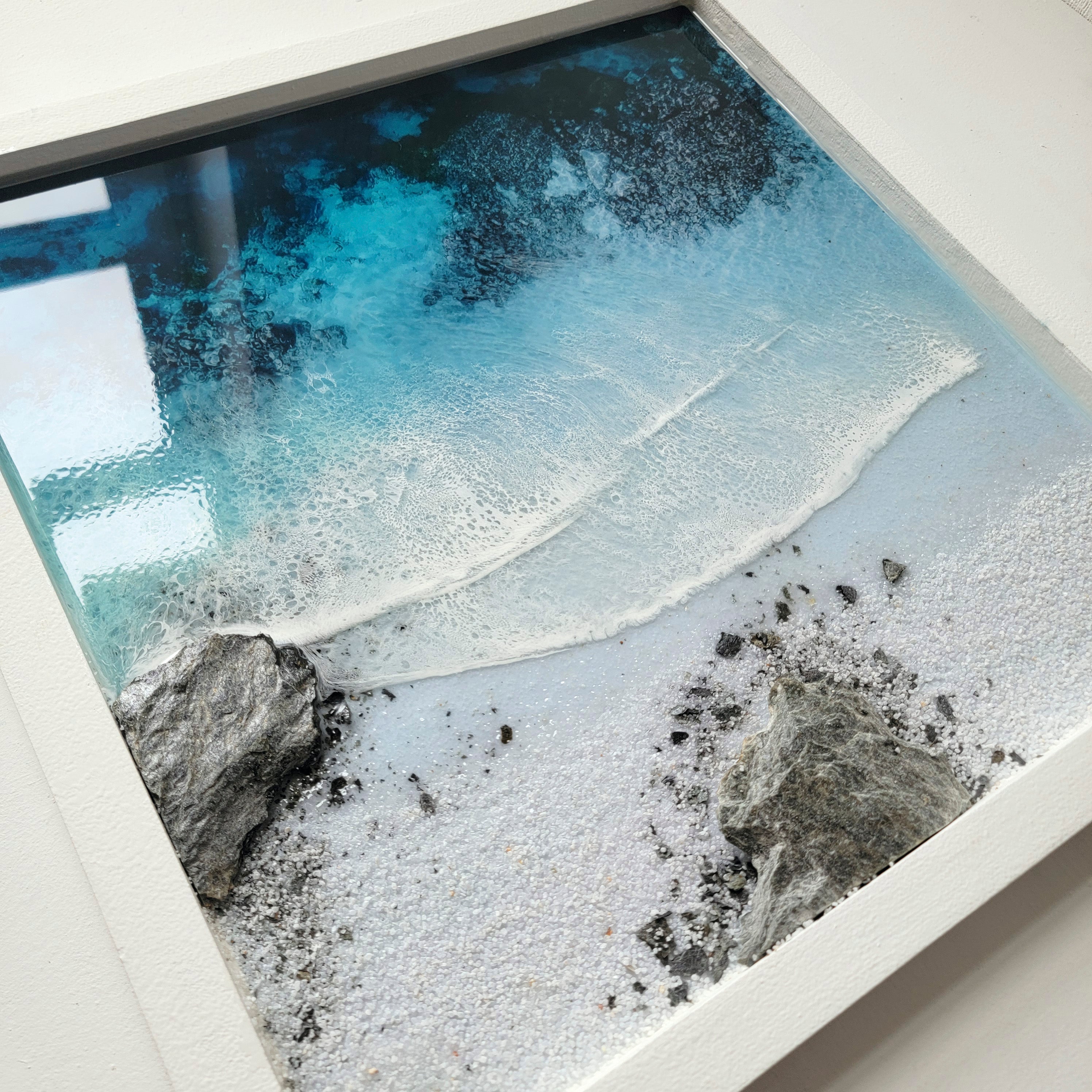 This one-of-a-kind work of art will transport you to a peaceful ocean paradise with its calm colors and calming textures.