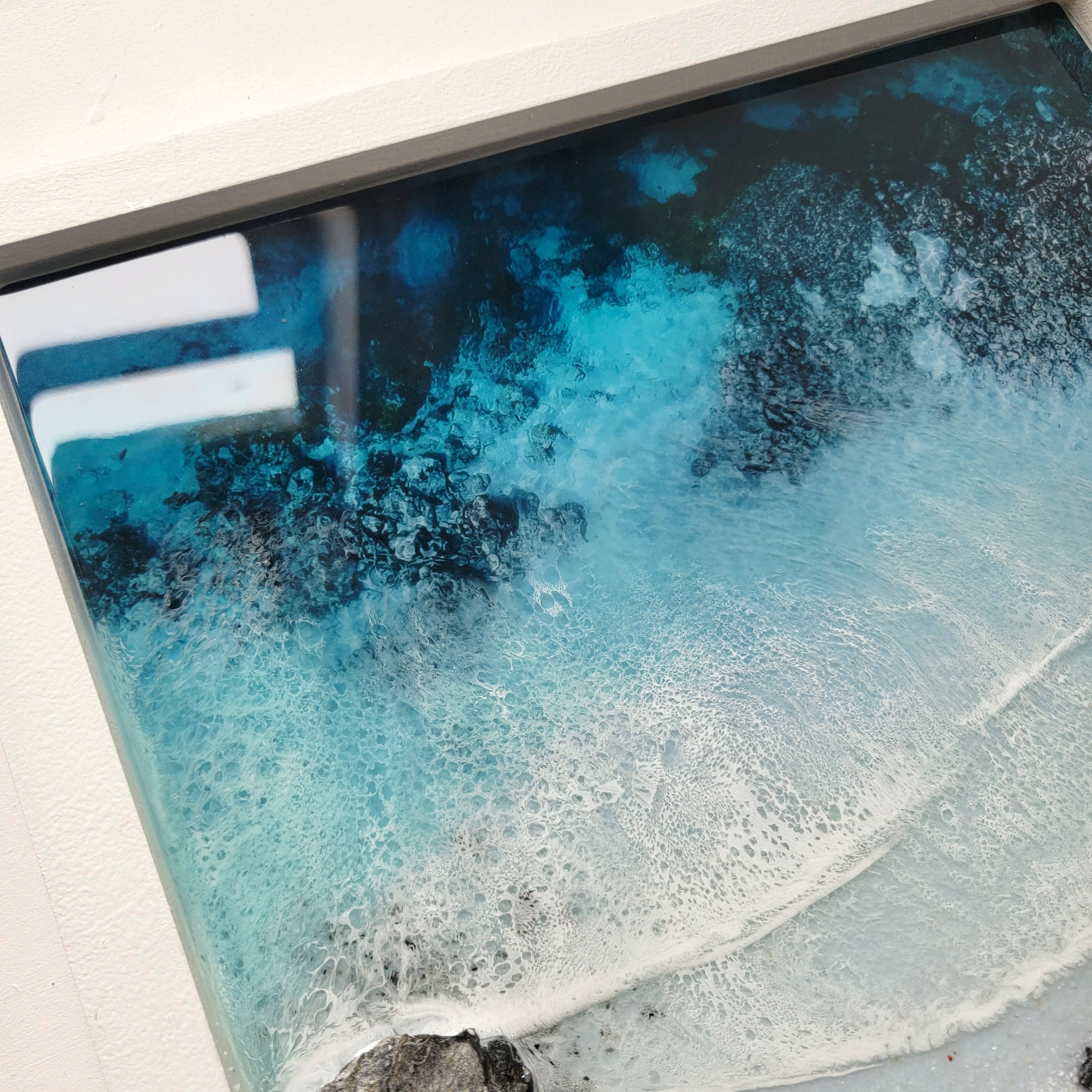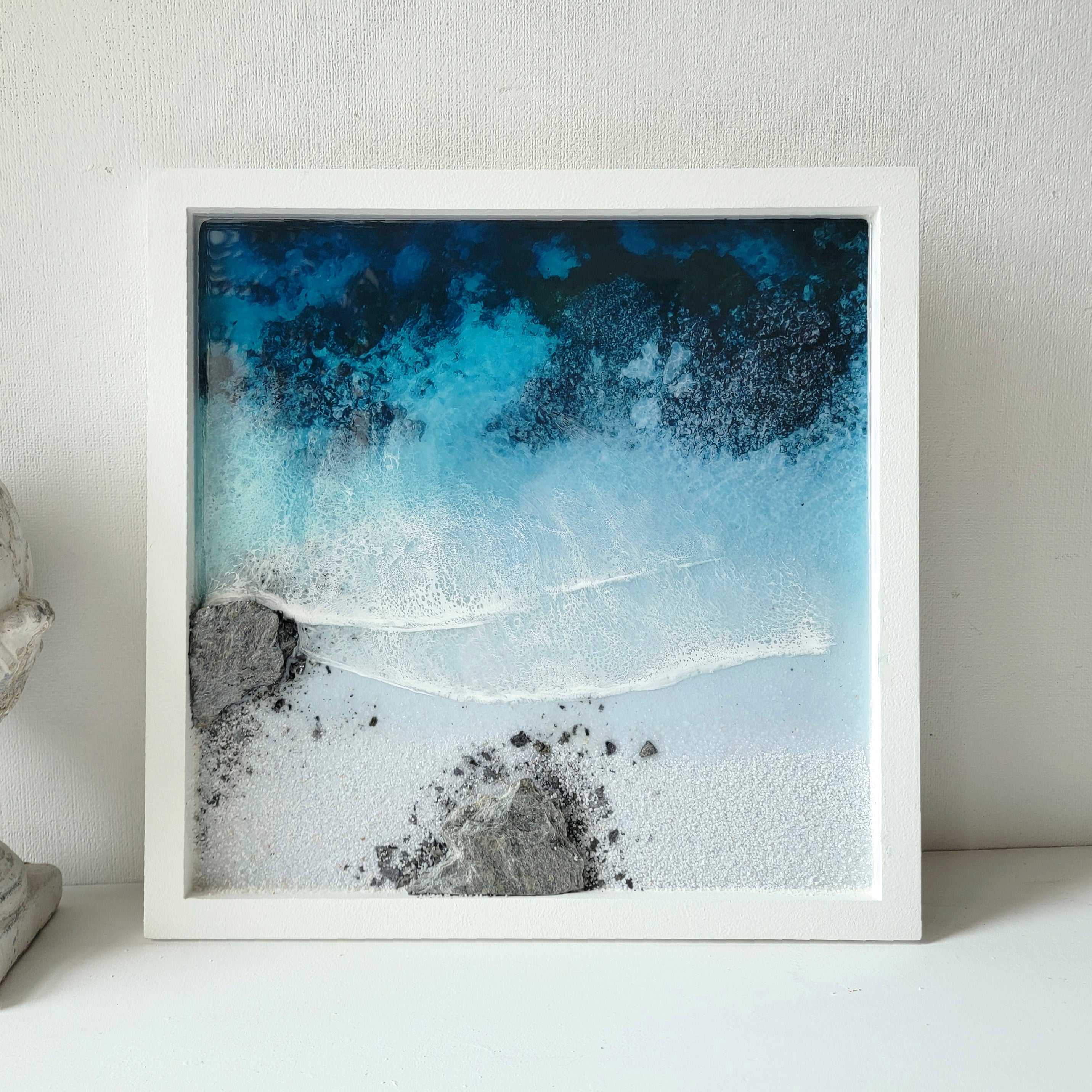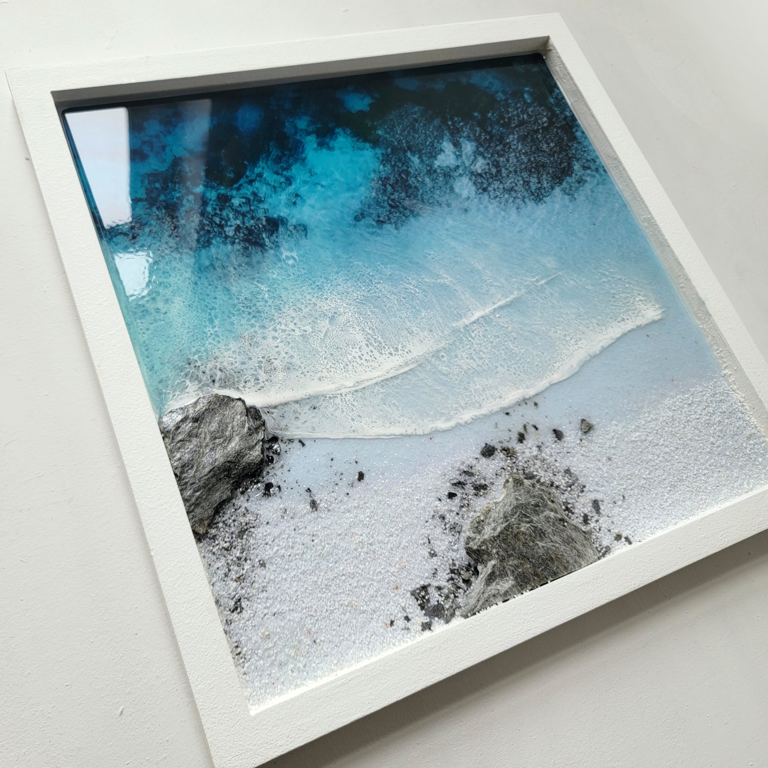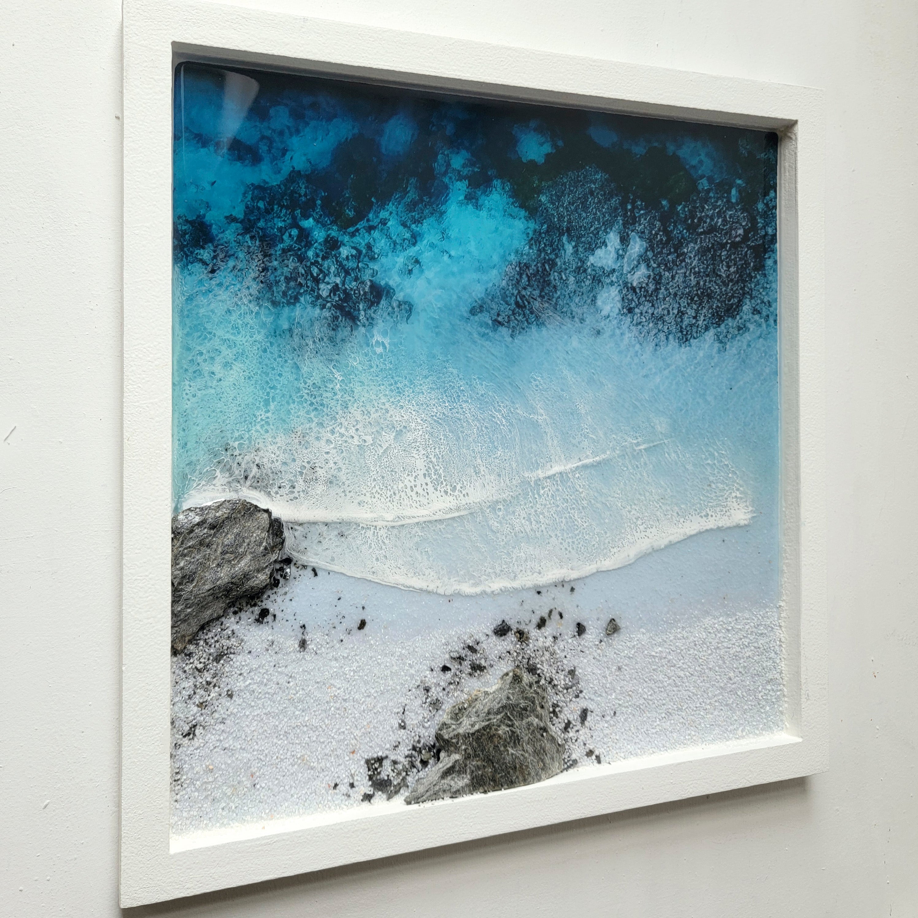 This one-of-a-kind work of art will transport you to a peaceful ocean paradise with its calm colors and calming textures.