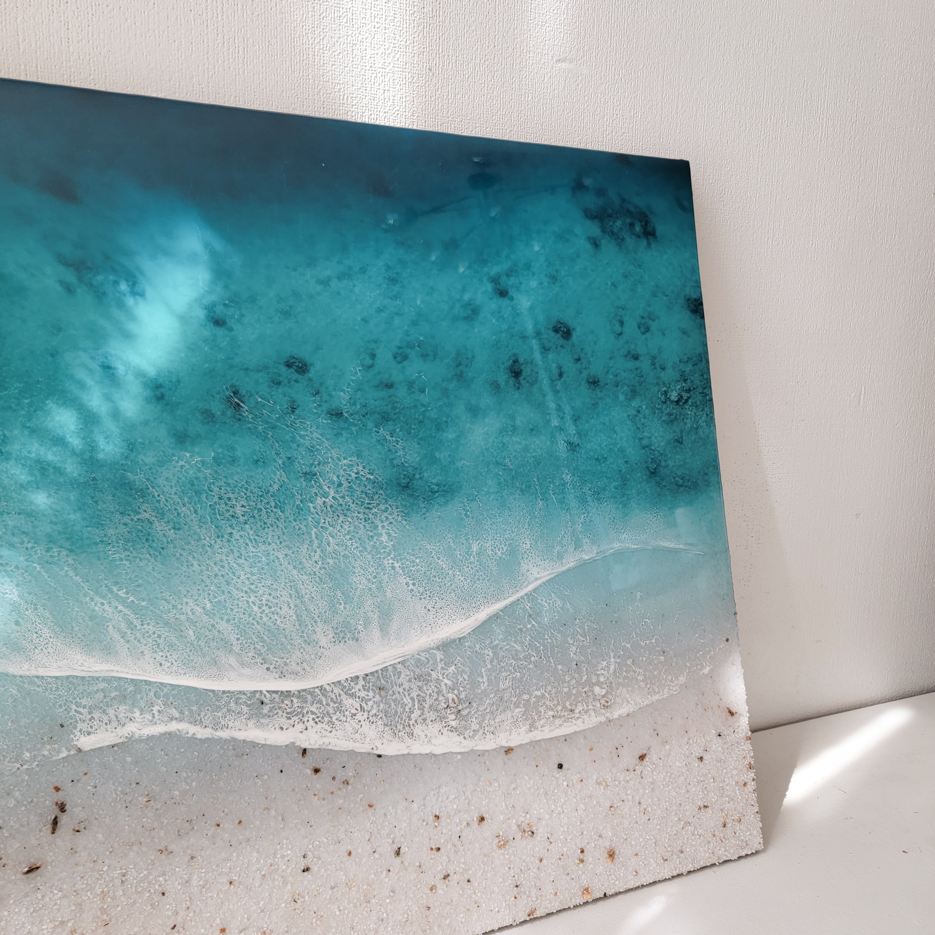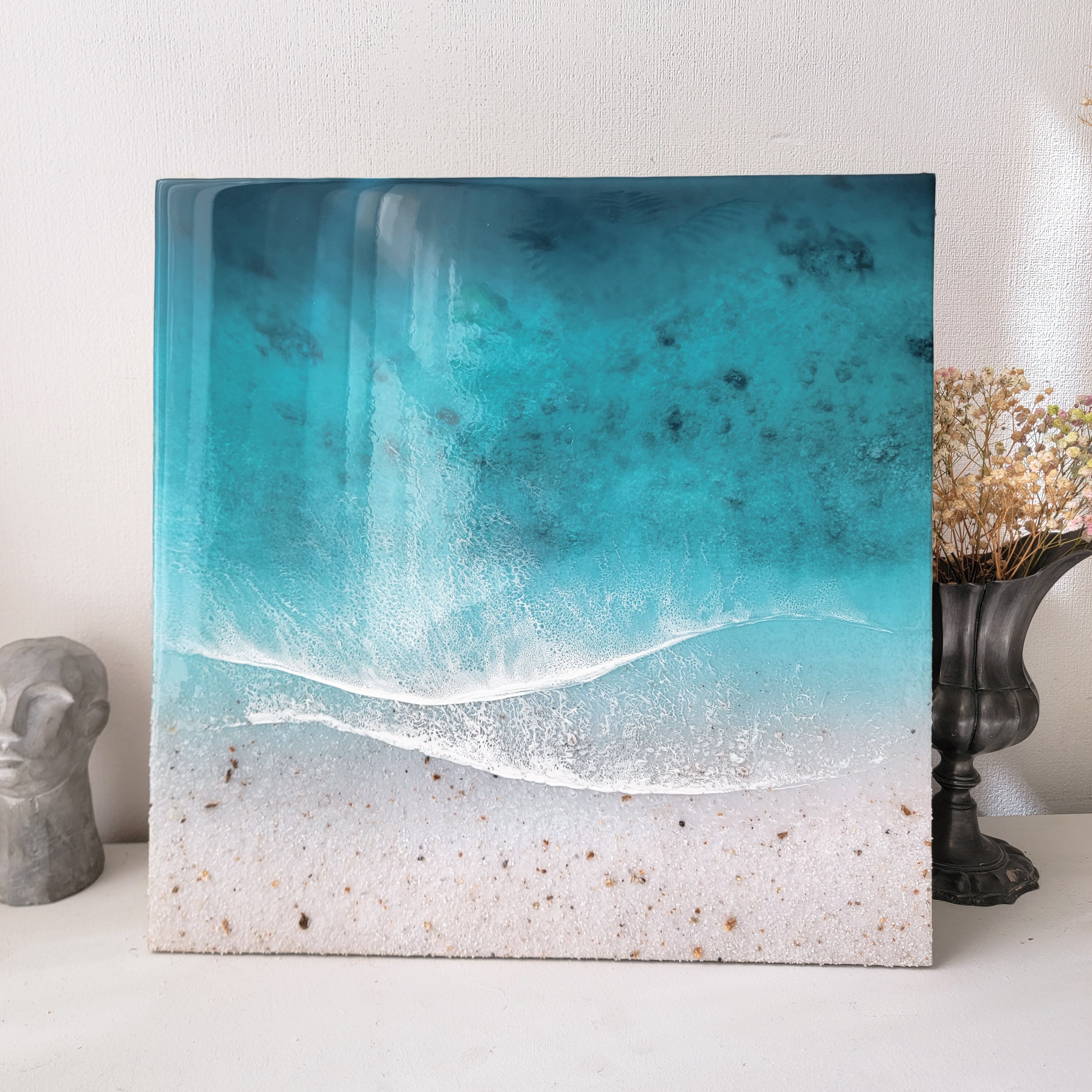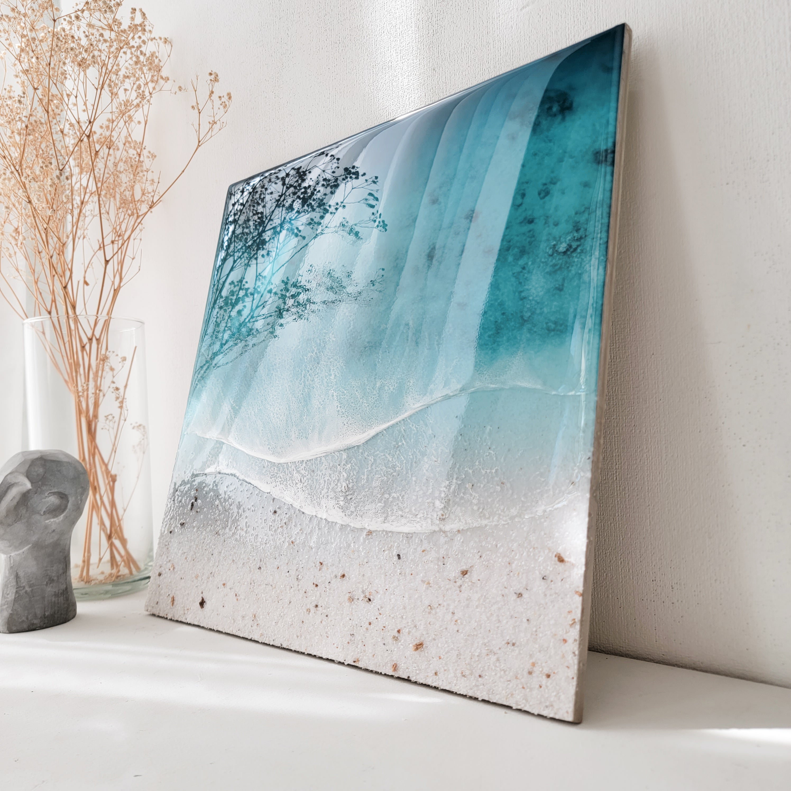 This one-of-a-kind work of art will transport you to a peaceful ocean paradise with its calm colors and calming textures.