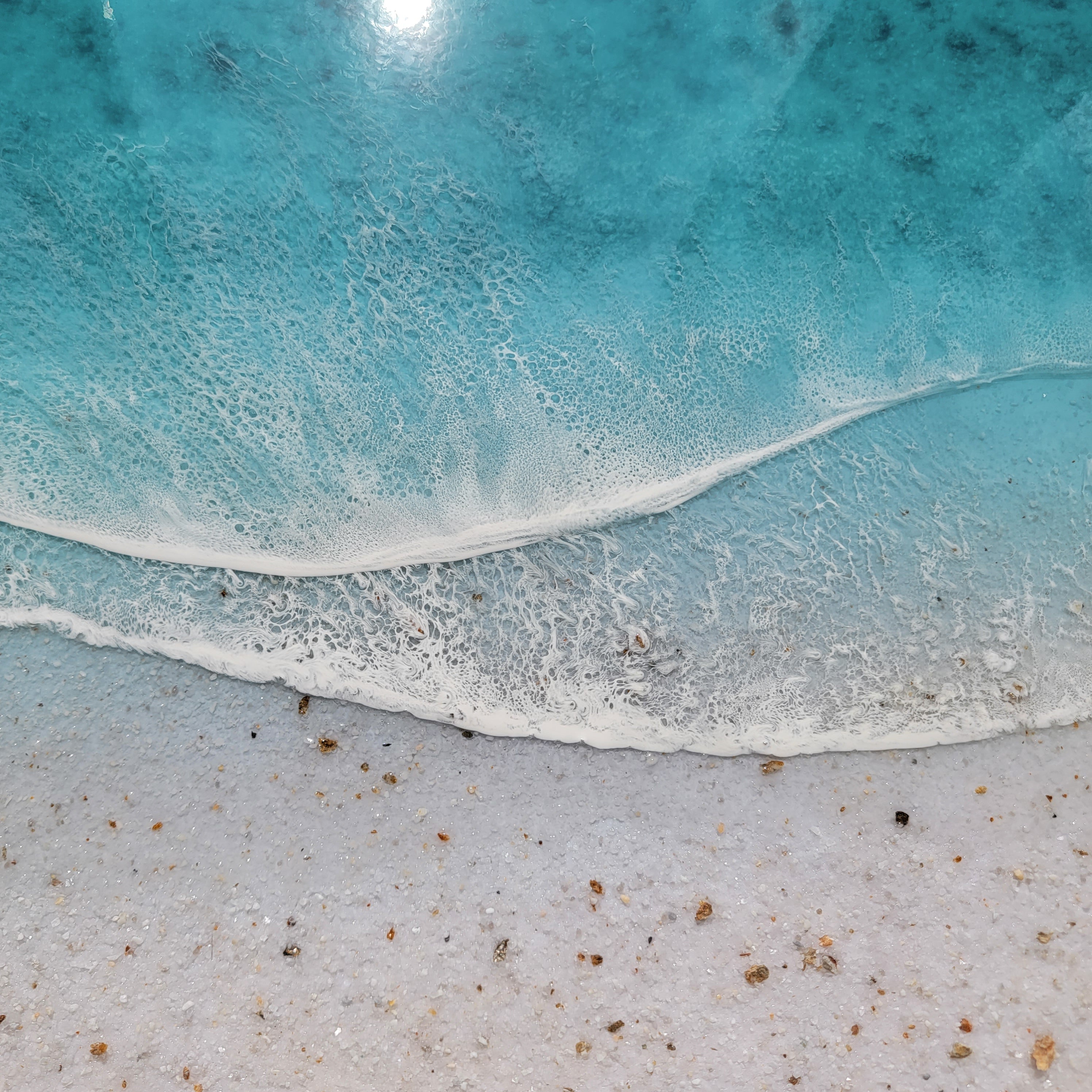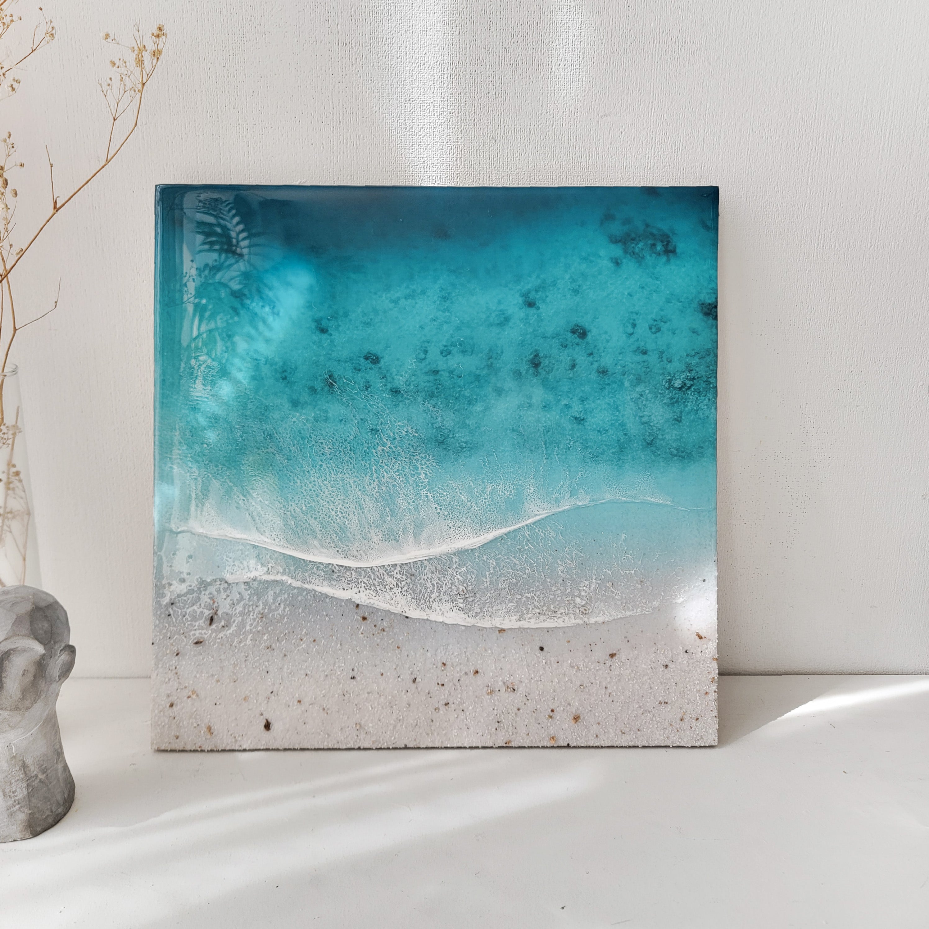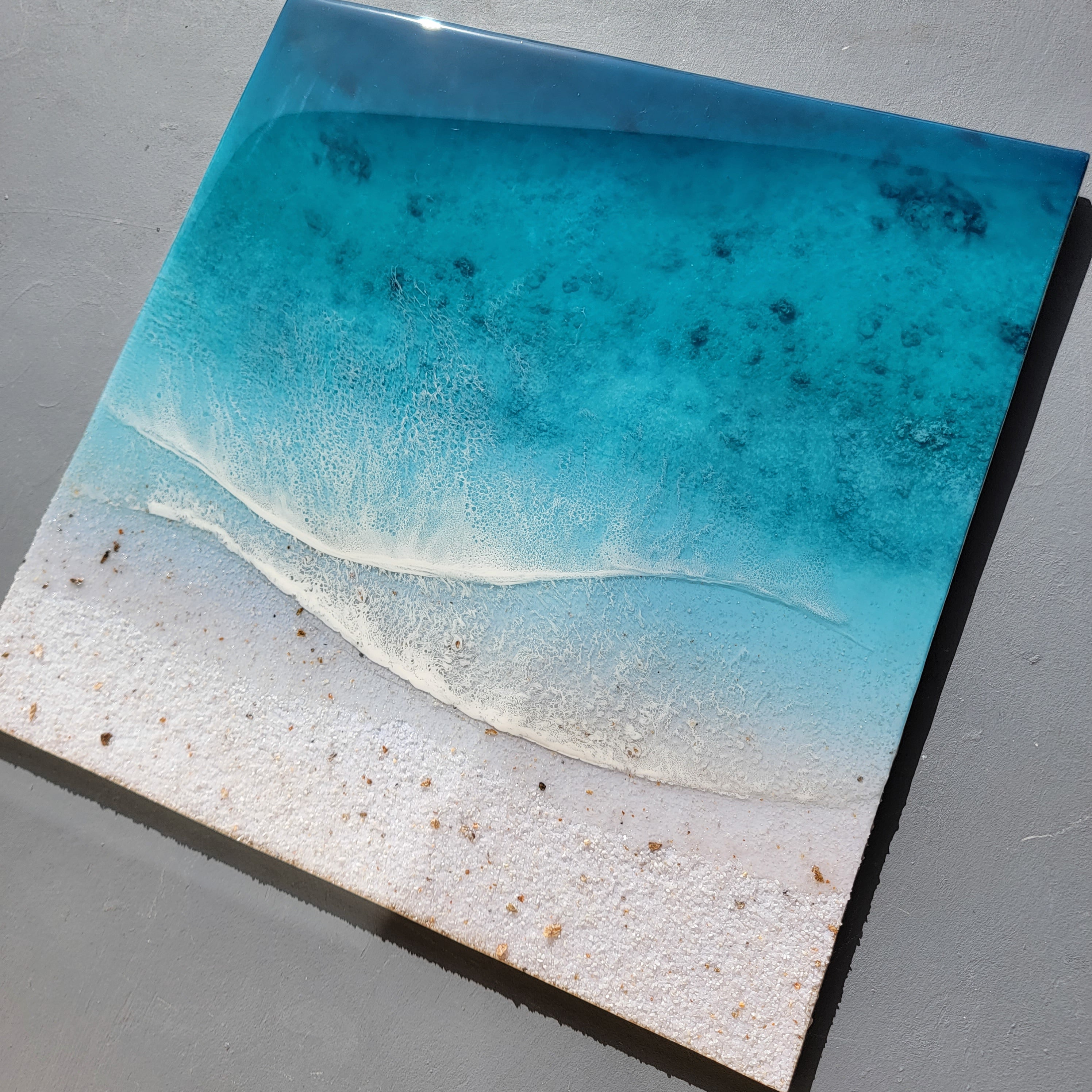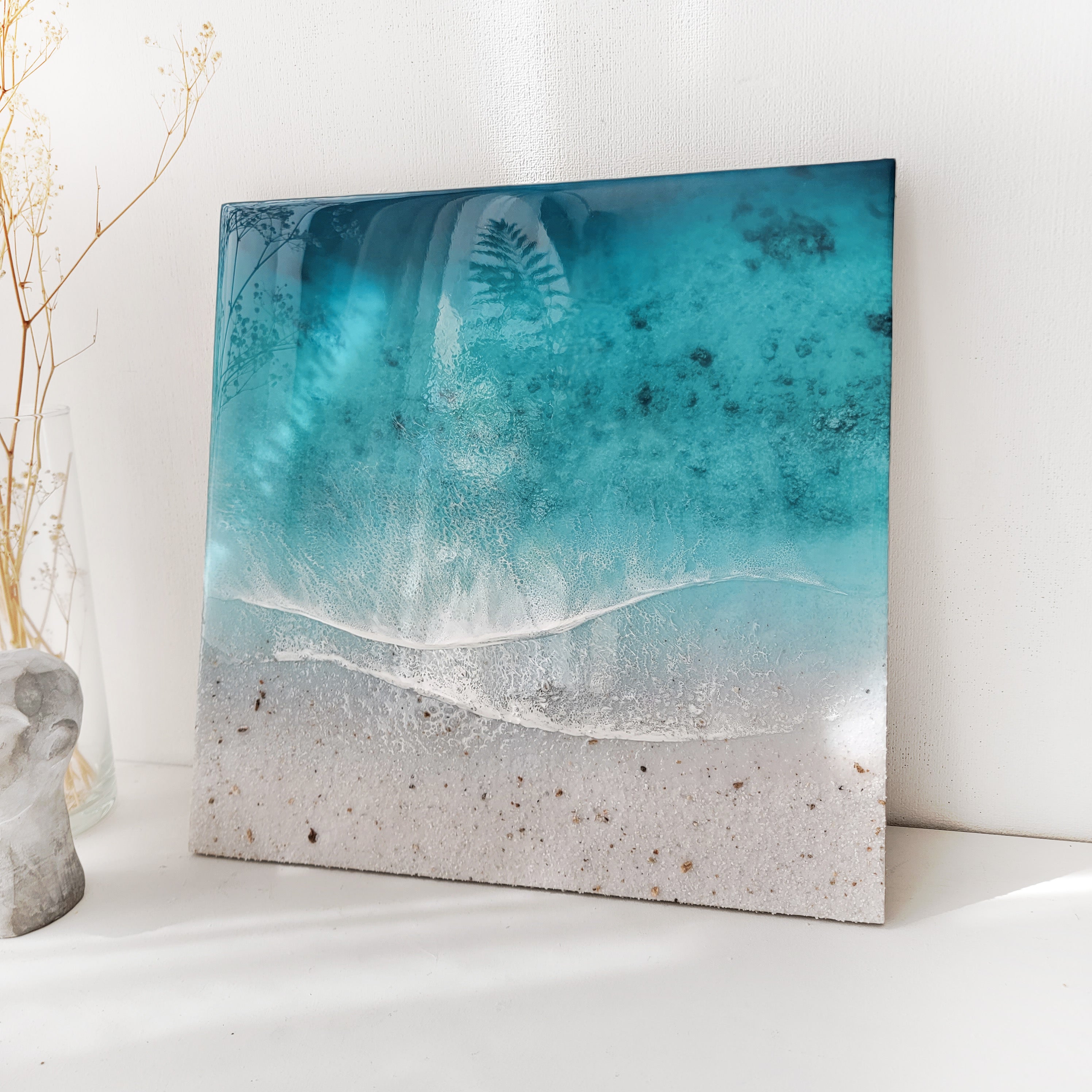 This one-of-a-kind work of art will transport you to a peaceful ocean paradise with its calm colors and calming textures.