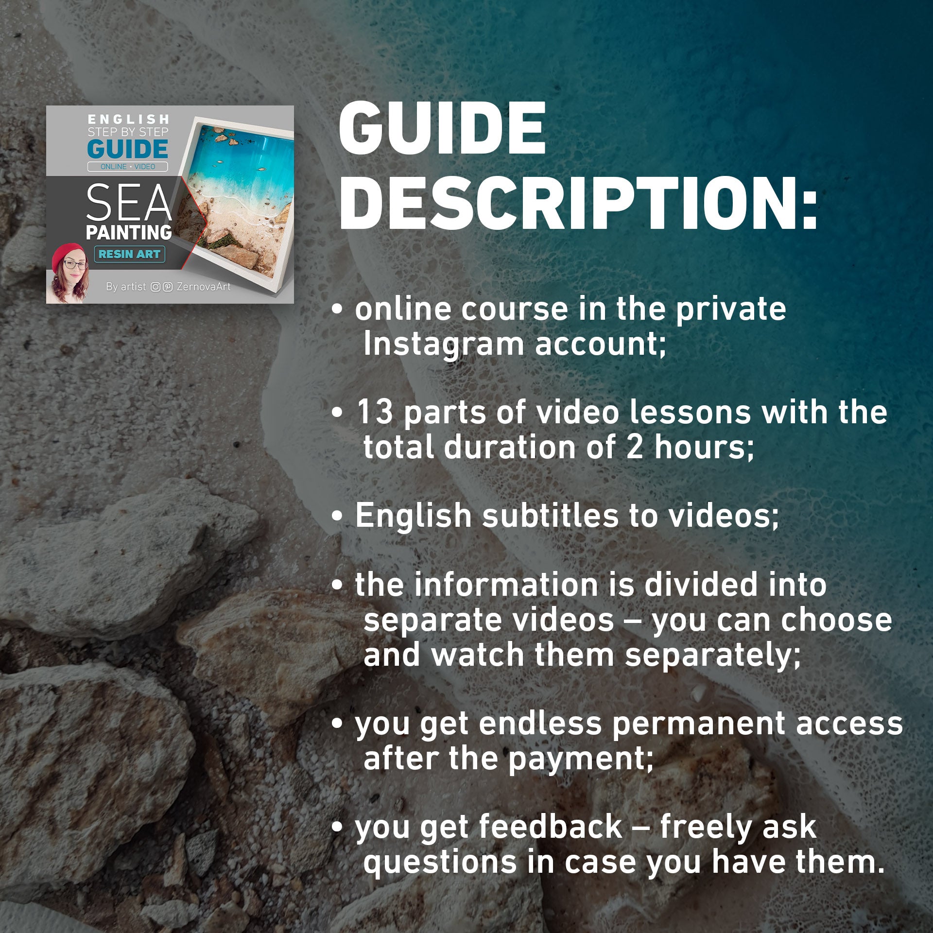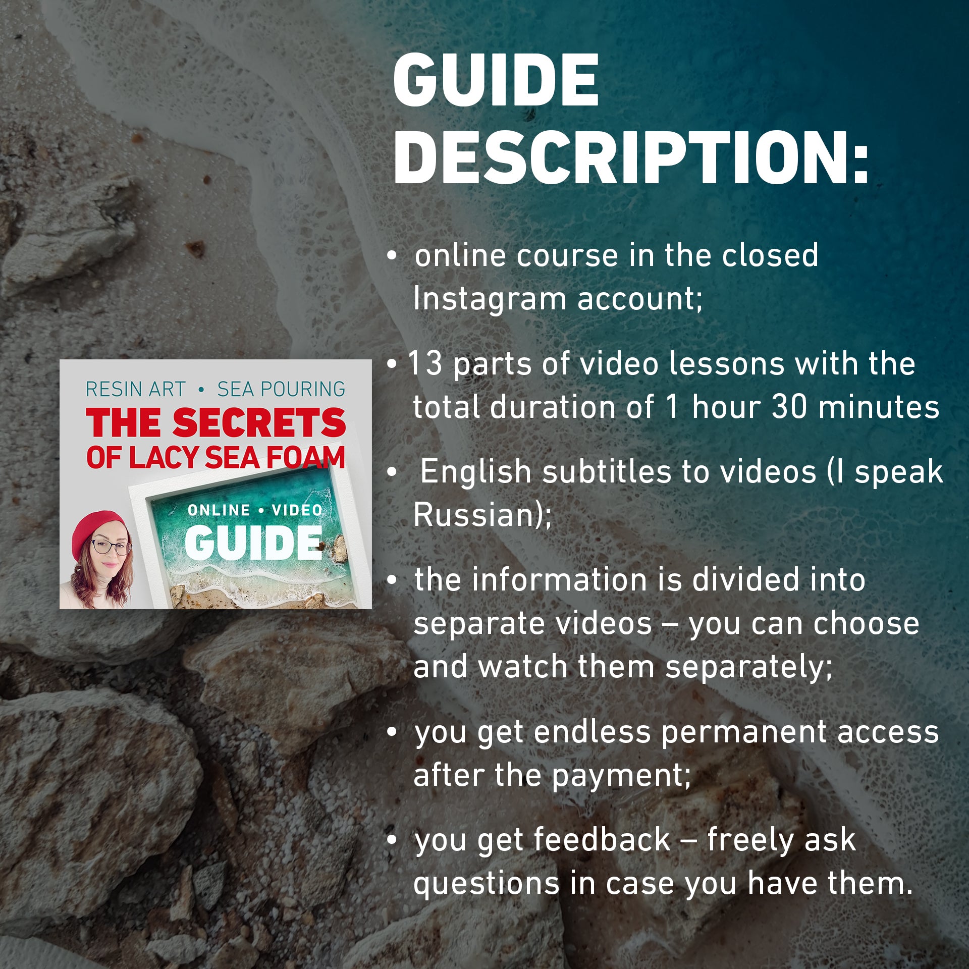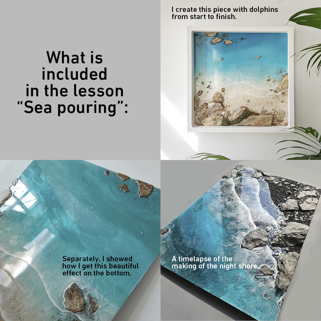 English online step by step guides: "Resin Sea Pouring" + "The secrets of lacy sea foam".
